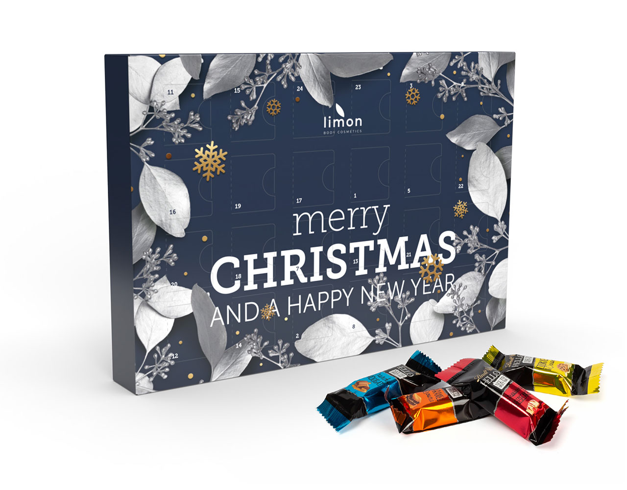 Adventskalender MULTI ECO Lindt HELLO Mini Sticks, Preise in Euro pro Stück inkl. individuellem Druck, zzgl. MwSt. und Versand