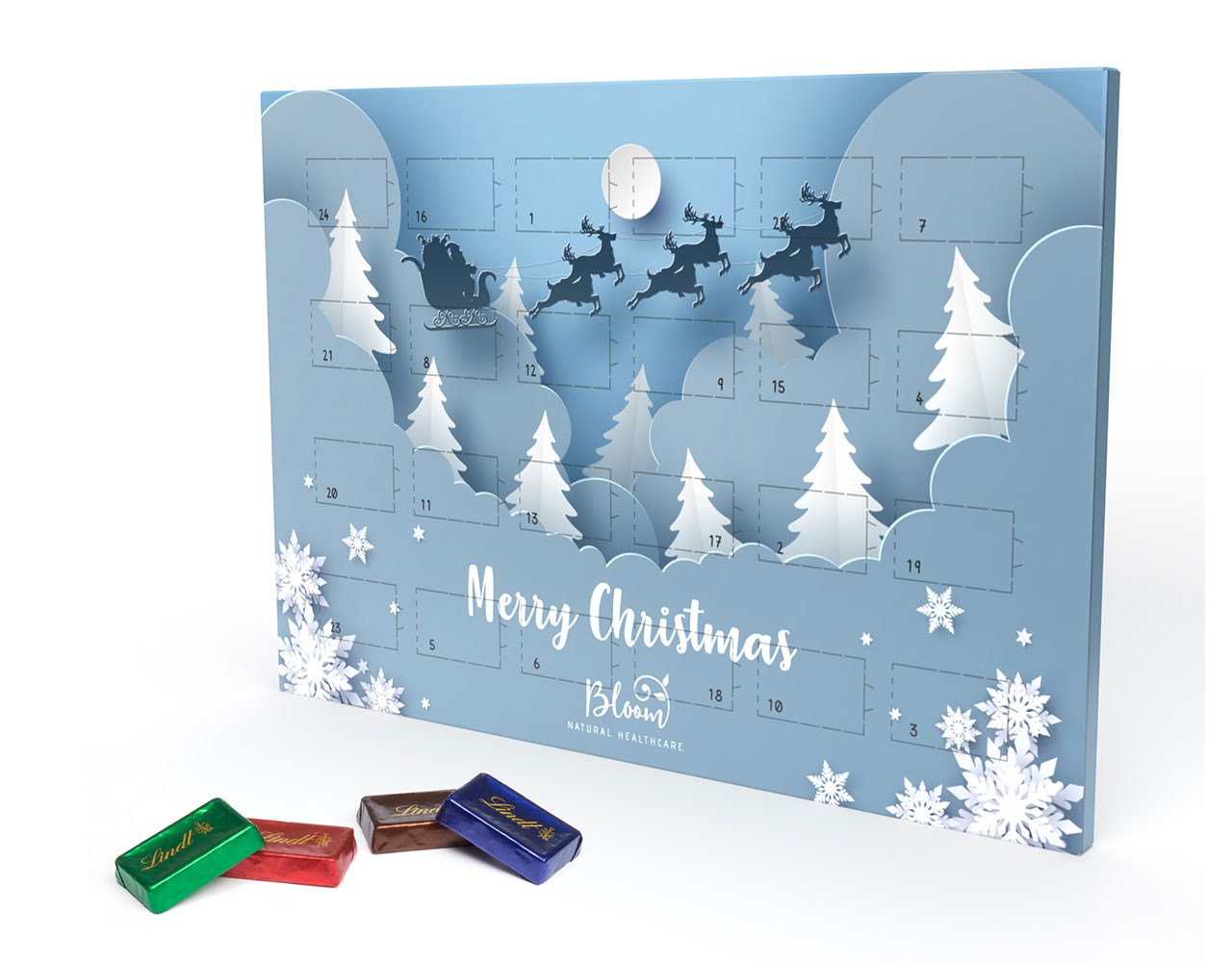 Lindt Adventskalender Naps DIN A4 ECO, Preise in Euro pro Stück inkl. individuellem Druck, zzgl. MwSt. und Versand