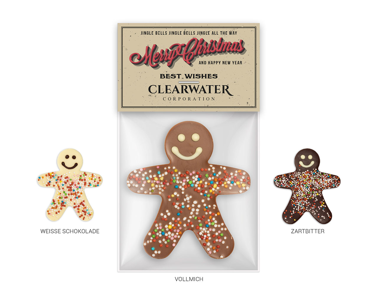 Schokoladen Männchen, Preise in Euro pro Stück inkl. individuellem Kartonreiter, zzgl. MwSt. und Versand